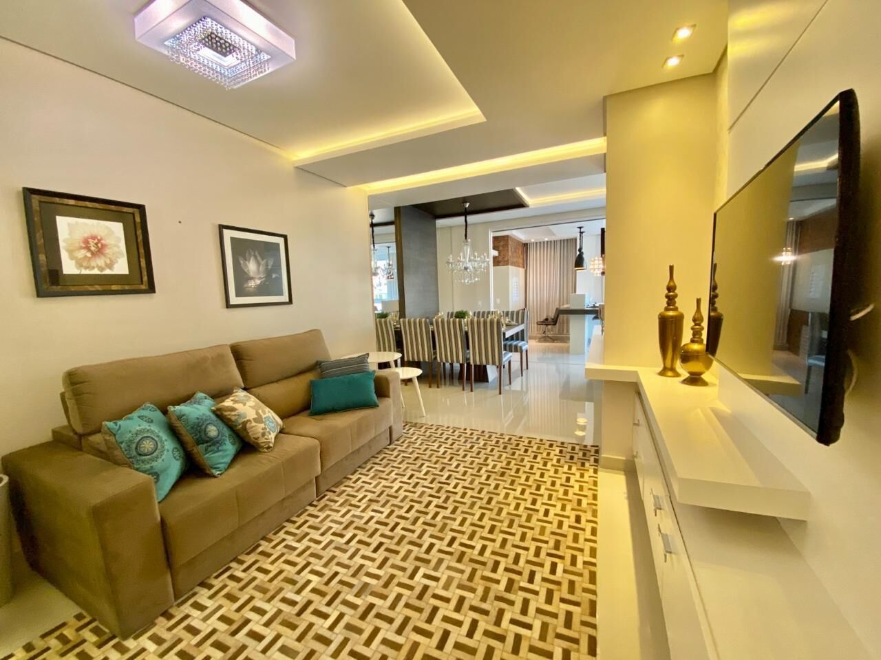 3 Dormitórios, sendo 3 suítes3 Banheiros2 VagasGaragem Coberta1 Sala de TV1 Cozinha1 Lavabo1 Sala de jantar1 Sala de estar1 Área de serviço