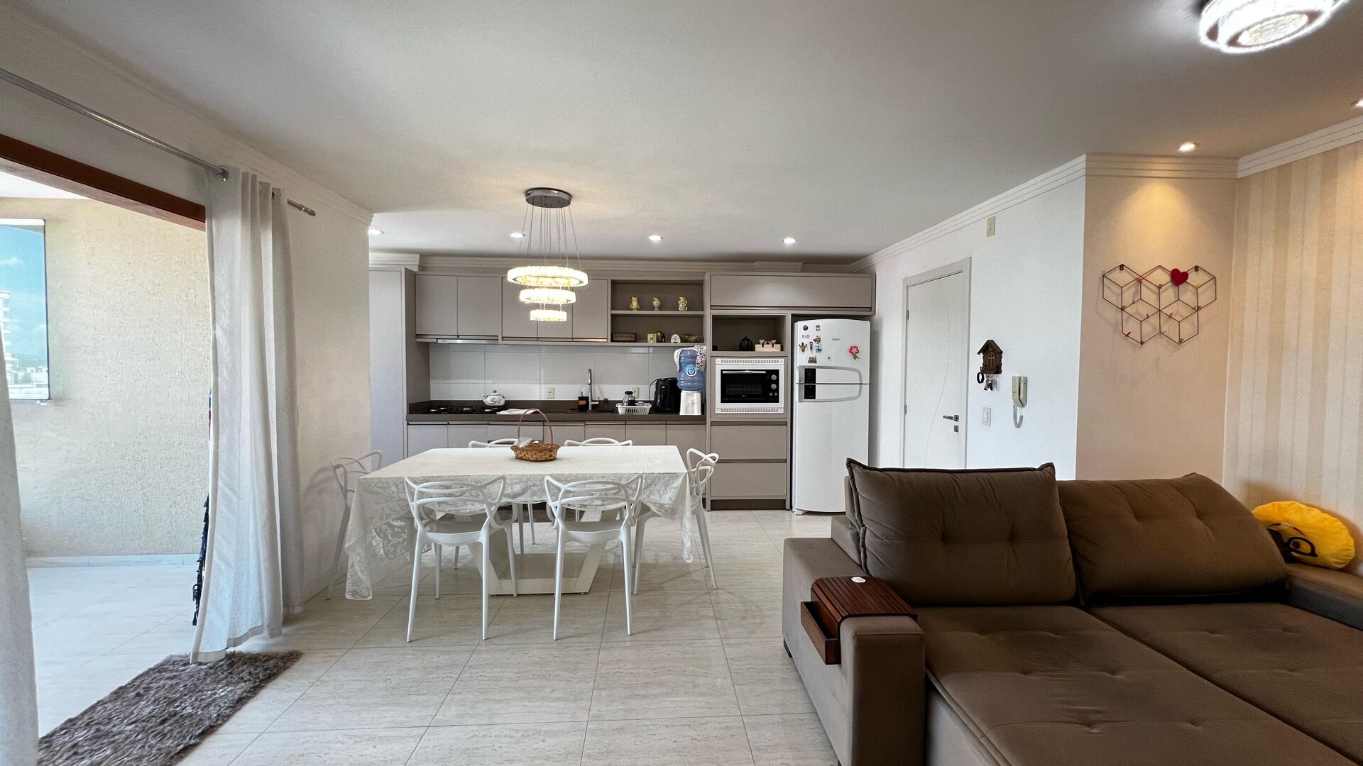 - Móveis planejados na cozinha, sala, banheiro e quarto de casal